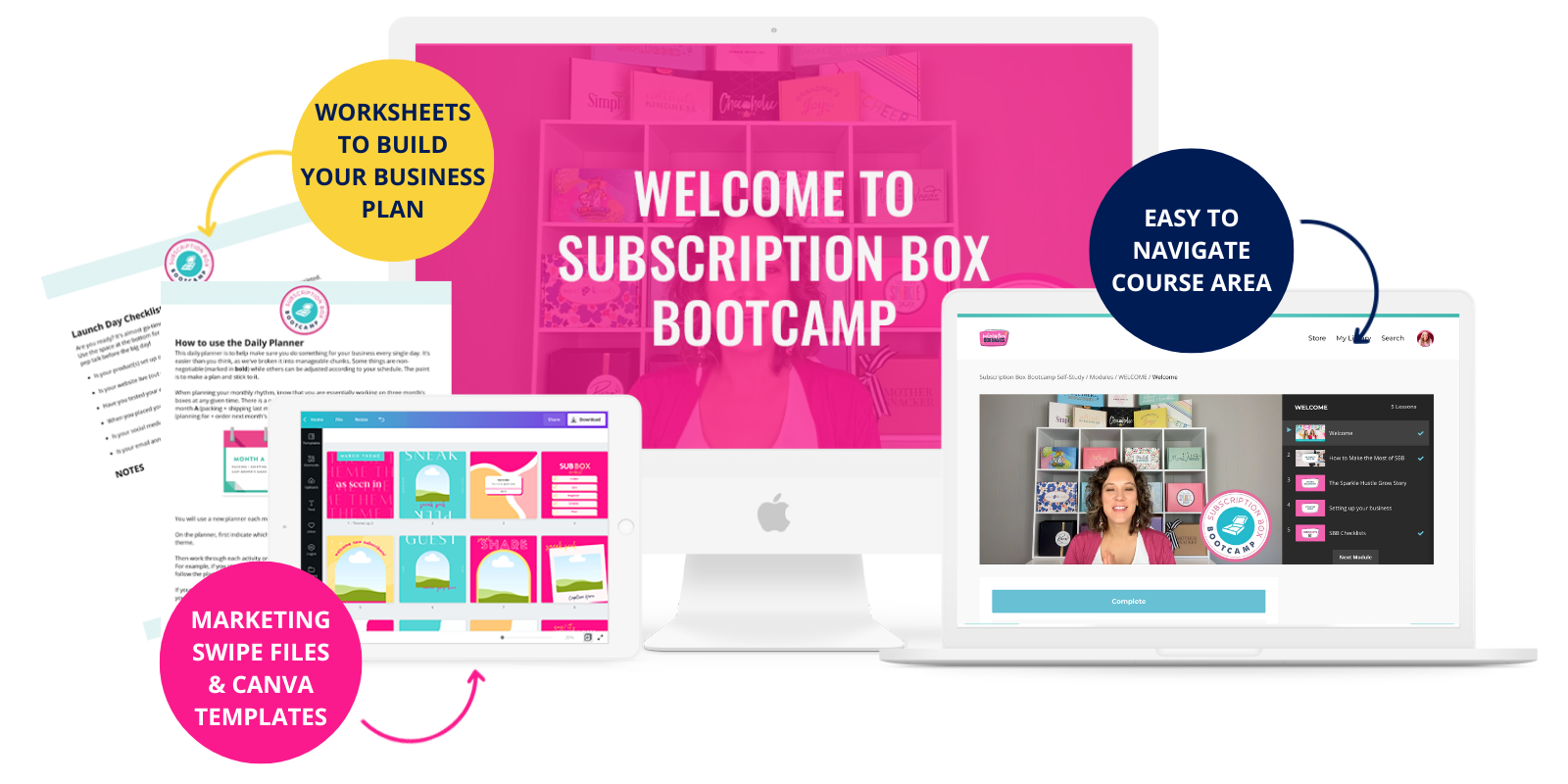 Subscription Box Bootcamp is a self-study course to help you get your box idea off the ground and provide you with a solid foundation for beyond launch. It’s built to get you from point A to point B as quickly and easily as possible, holding your hand through the journey.